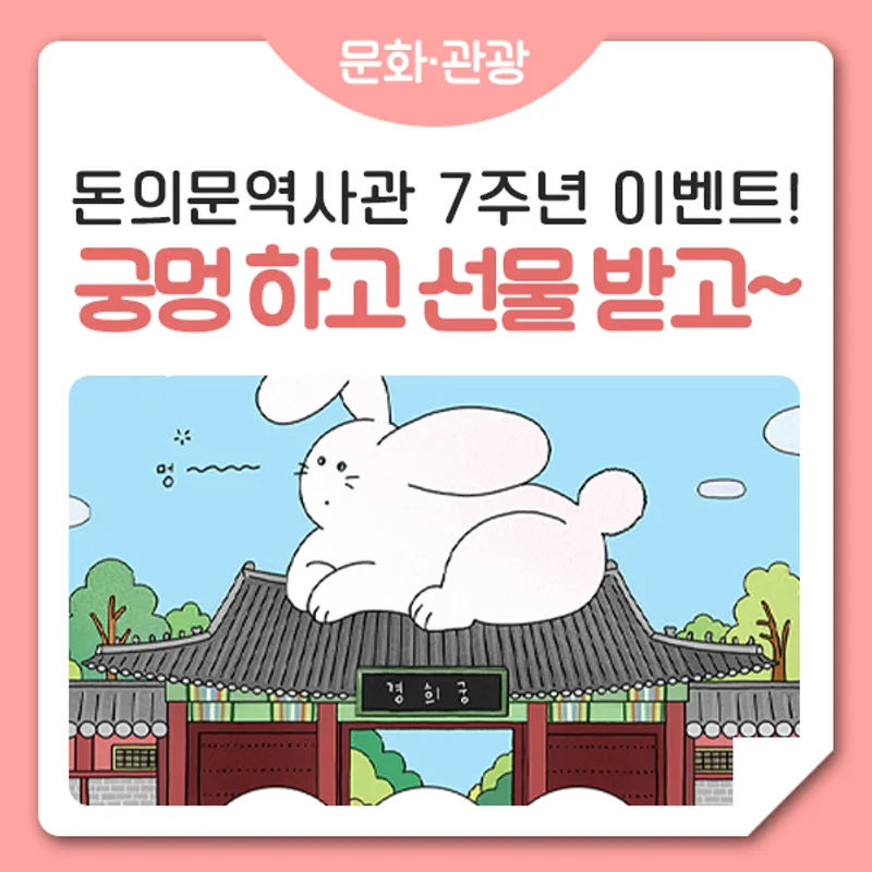 서울 도심에서 역사를 느낄 수 있는 특별한 공간, 돈의문역사관이 개관 7주년을 맞이했습니다! 이를 기념하여 관람객들을 위한 특별한 이벤트가 진행됩니다. 서울의 근대 역사와 문화를 더욱 깊이 경험하고, 럭키박스 선물도 받을 수 있는 기회! 이번 이벤트를 놓치지 마세요.
