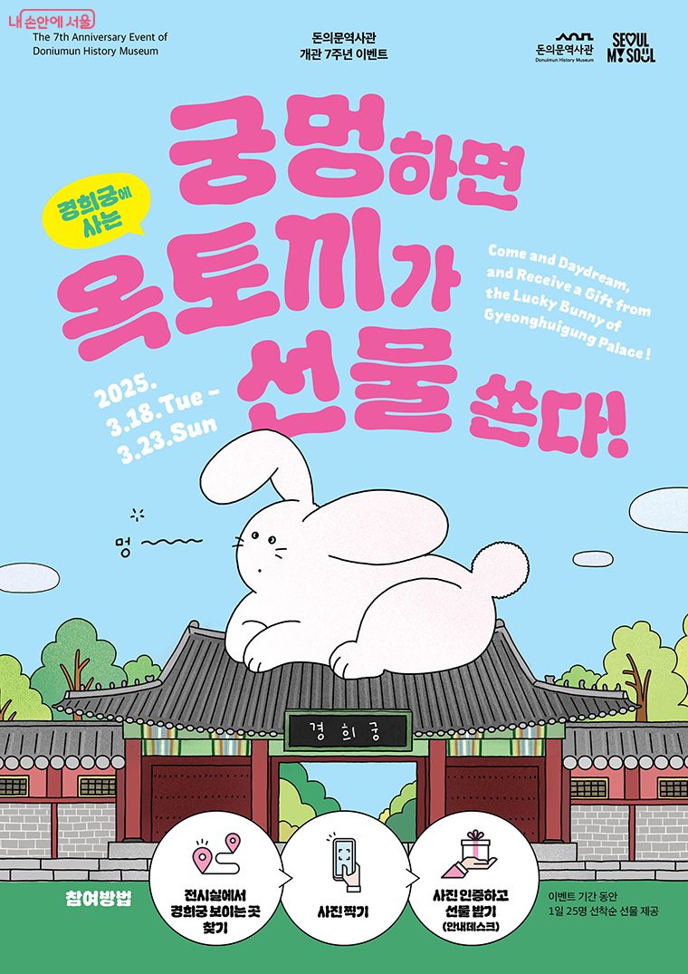 이번 기회를 통해 돈의문역사관과 경희궁을 방문해보세요. 역사도 배우고, 럭키박스도 받고, SNS에도 인증하면 1석 3조!