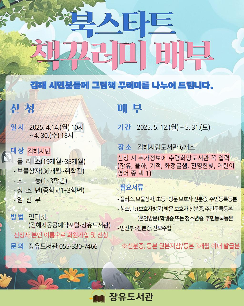 아이의 첫 책, 어떻게 시작하면 좋을까요? 북스타트 꾸러미가 정답일 수 있습니다. 🎁 이번 2025년 김해시 시립도서관에서는 영유아부터 청소년, 그리고 임산부까지 책과 함께하는 삶을 시작할 수 있도록 특별한 책꾸러미를 준비했어요.