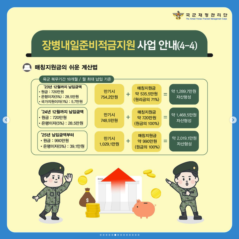 A. 전역하면 계좌로 한 번에 쏴줘. 원금+이자+매칭지원금까지!