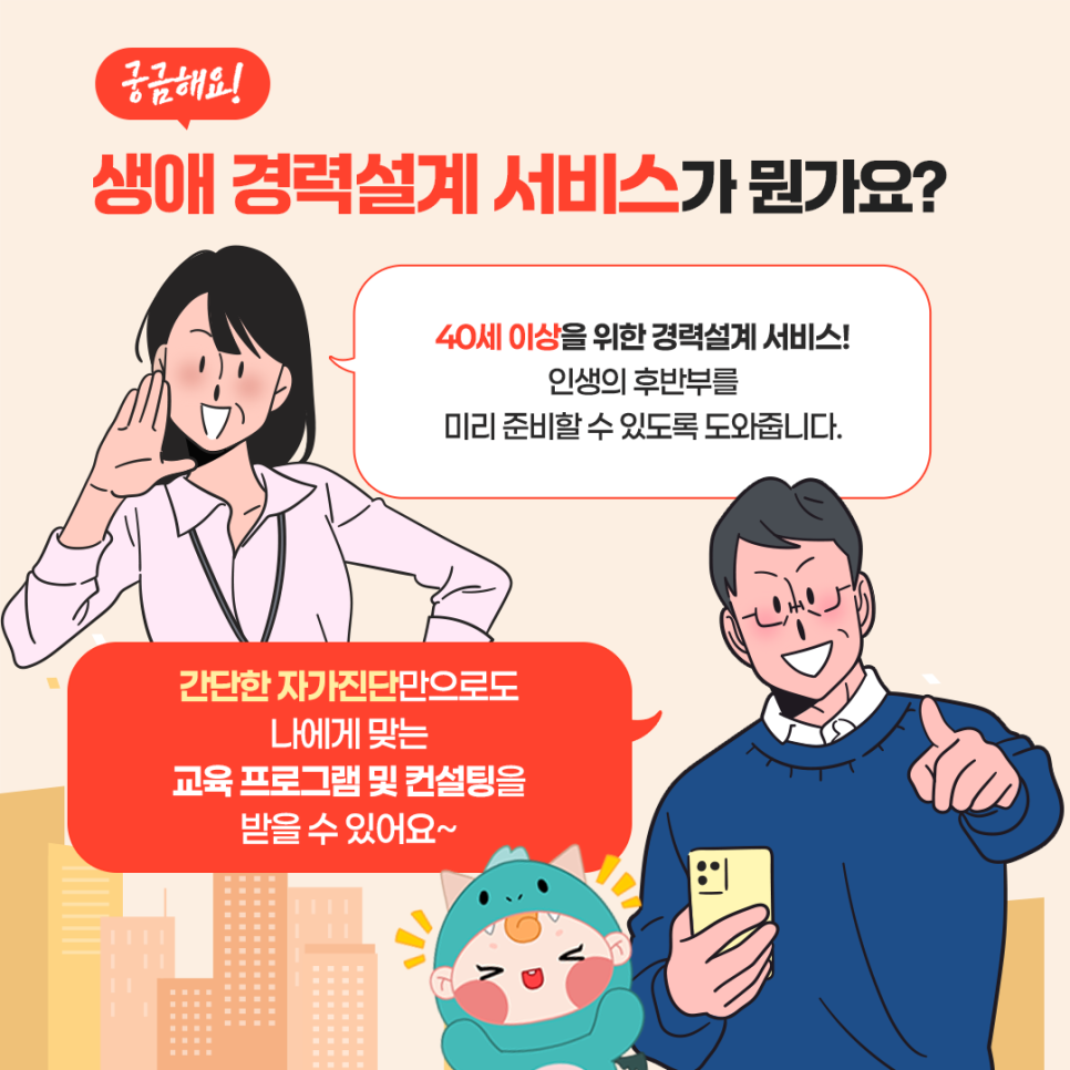 40대 이상 중장년층, 이제 '막막한 재취업'은 옛말입니다. 생애경력설계 서비스로 준비된 인생 2막을 시작하세요. 무료 자가진단, 맞춤형 교육, 취업 연계까지 정부가 책임지는 중장년 재도약 프로젝트가 기다립니다.