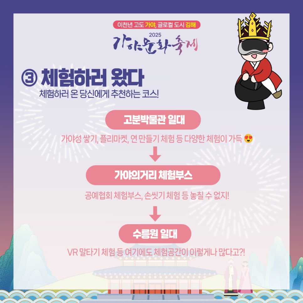| 체험 | 고분박물관 일대 → 가야의 거리 체험부스 → 수릉원 일대 |